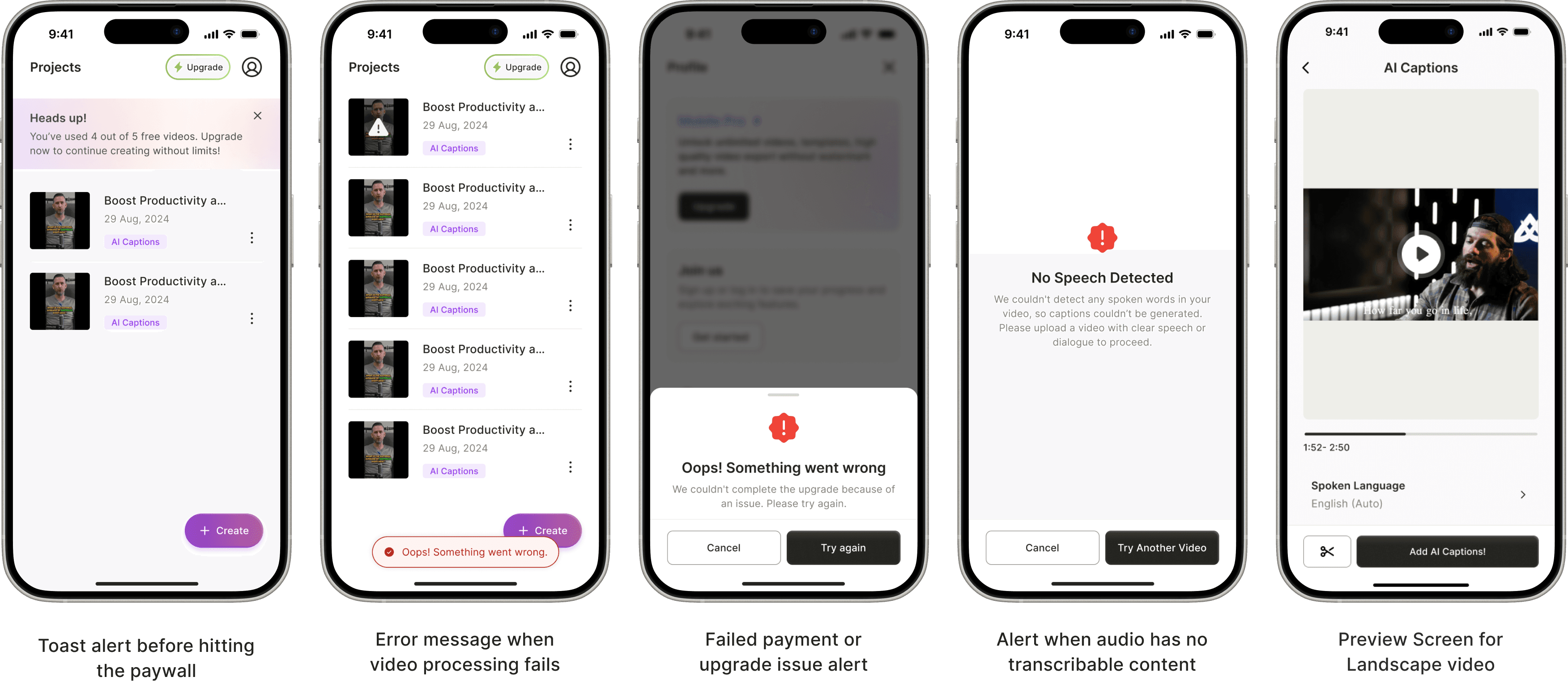 After uploading or recording a video for which users needed captions, the experience moved into a preview stage designed for quick confirmation.