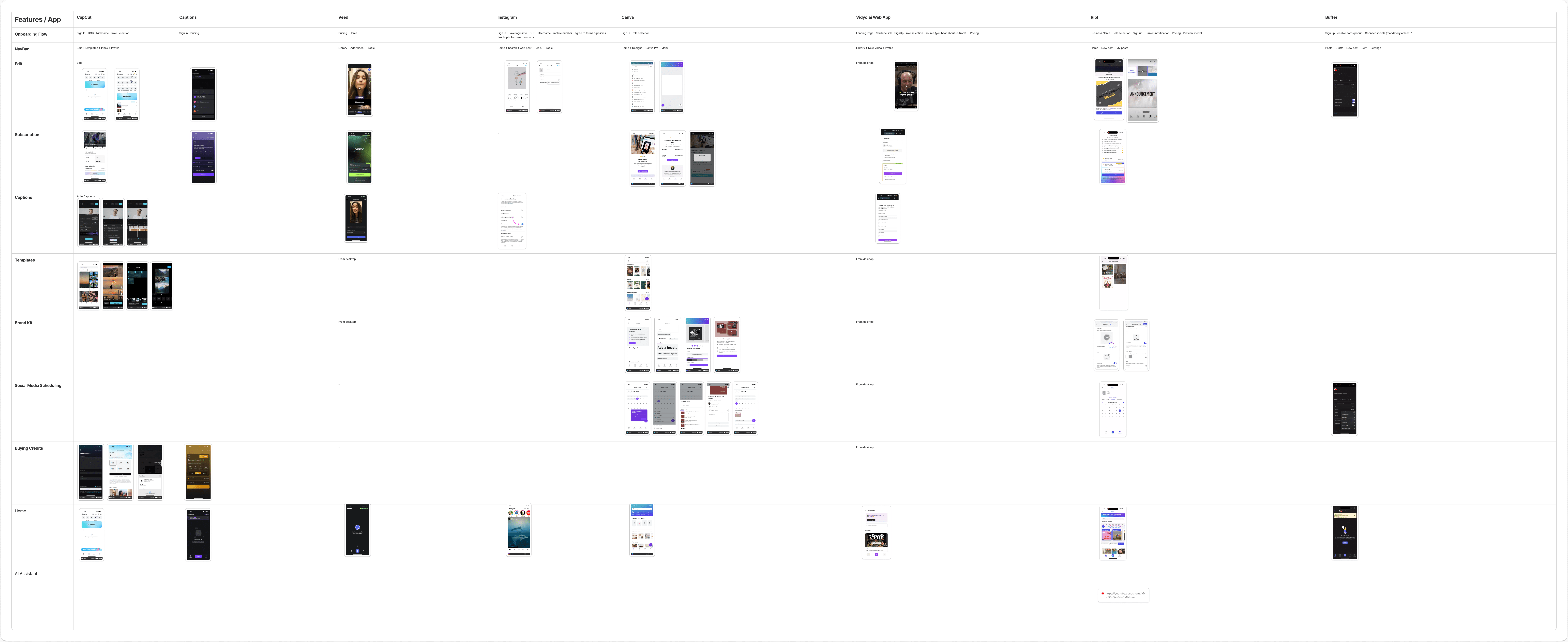 To shape the mobile experience, I analyzed over 8+ apps across various verticals, ranging from niche caption tools like CaptCut and Veed to broader content tools like Canva and Instagram. The audit helped identify proven UX patterns, friction points, and opportunities for differentiation.